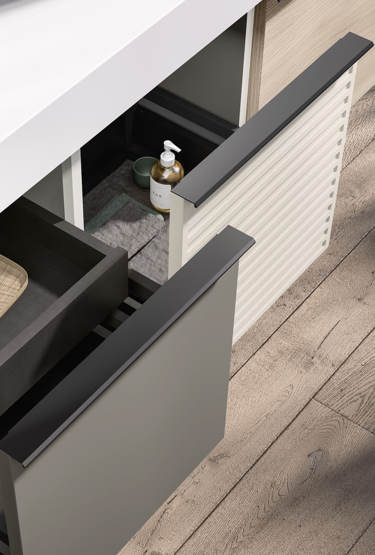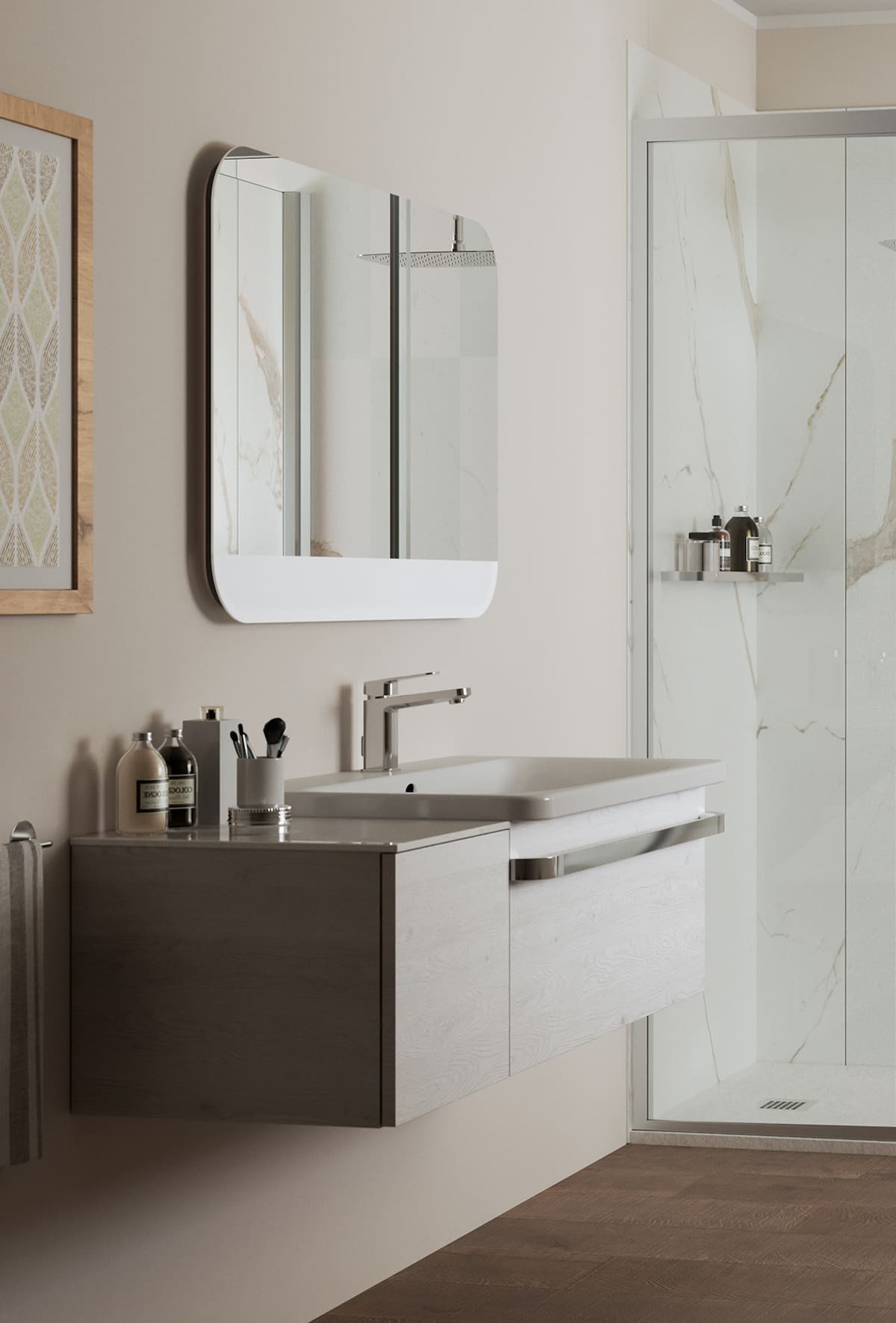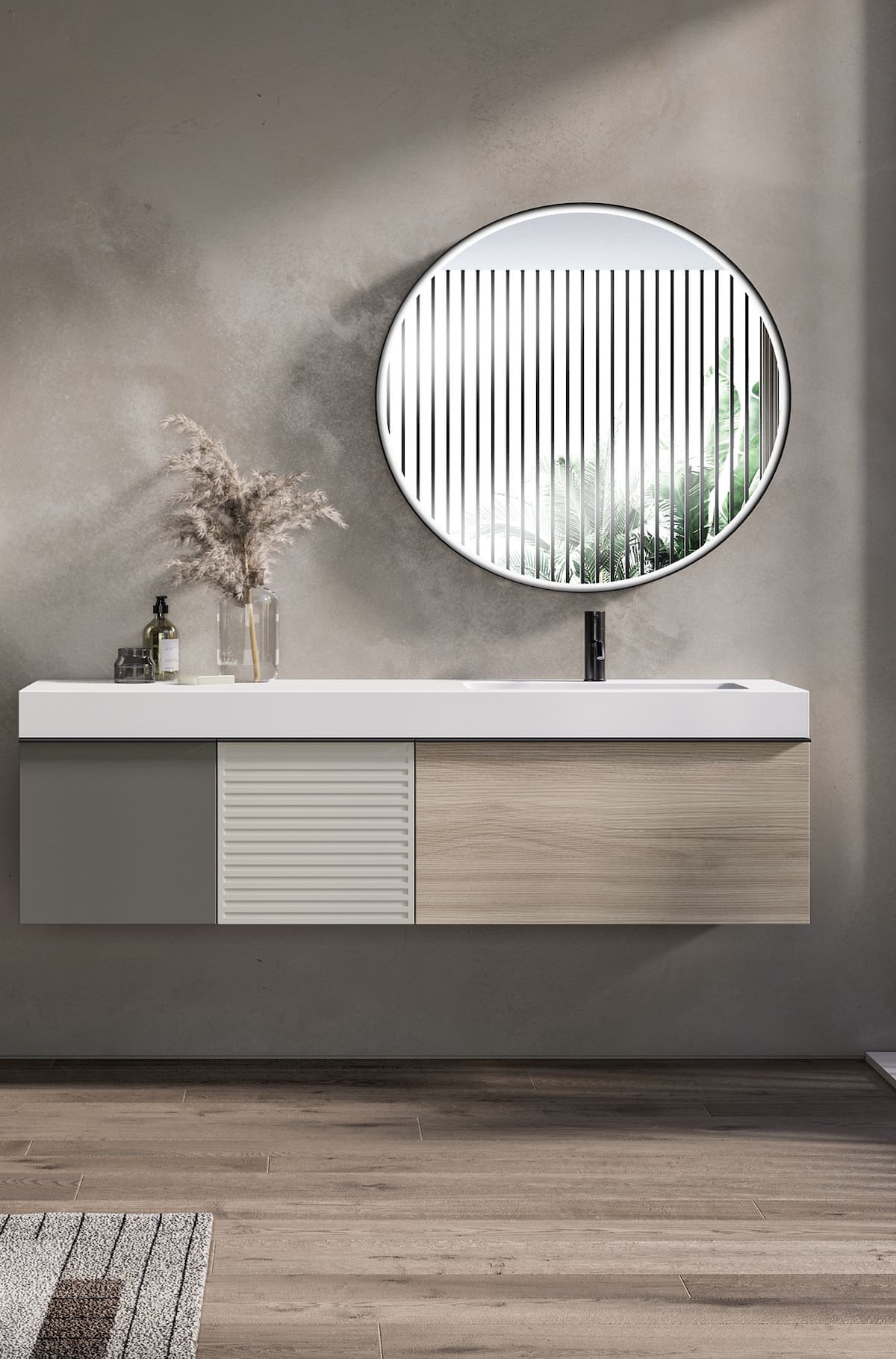 Одна из горячих тенденций — плавающие шкафы для ванных комнат, которые выглядят стильно и просто. Это, прежде всего, очень практичное решение. Мы освобождаем место на полу, благодаря чему такую мебель легко содержать в чистоте. Это современное решение поможет зрительно увеличить размеры помещения, максимально эффективно его использовать.