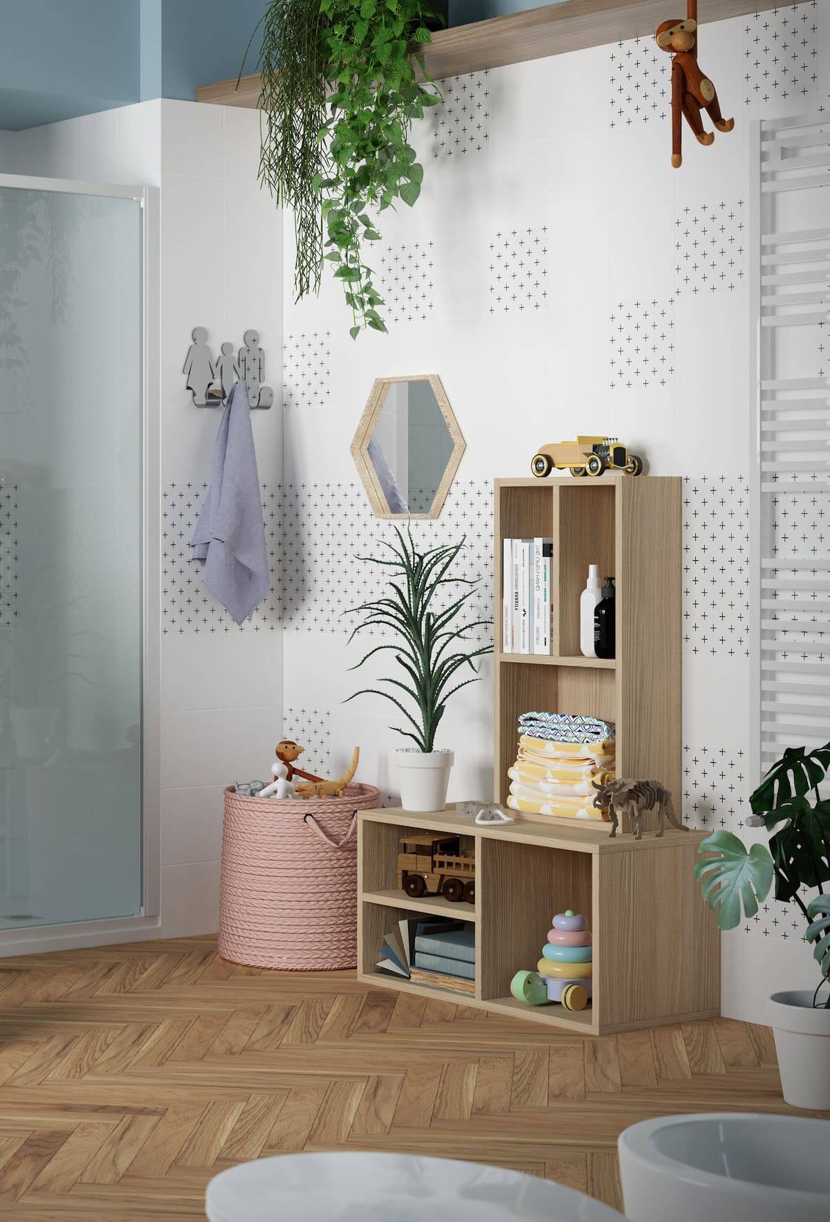 Оно возвращается не только в качестве декоративного аксессуара в мебели или аксессуарах, но и в настенных и напольных покрытиях. У вас будет все тепло, которое предлагает этот материал с имитацией деревянной плитки.