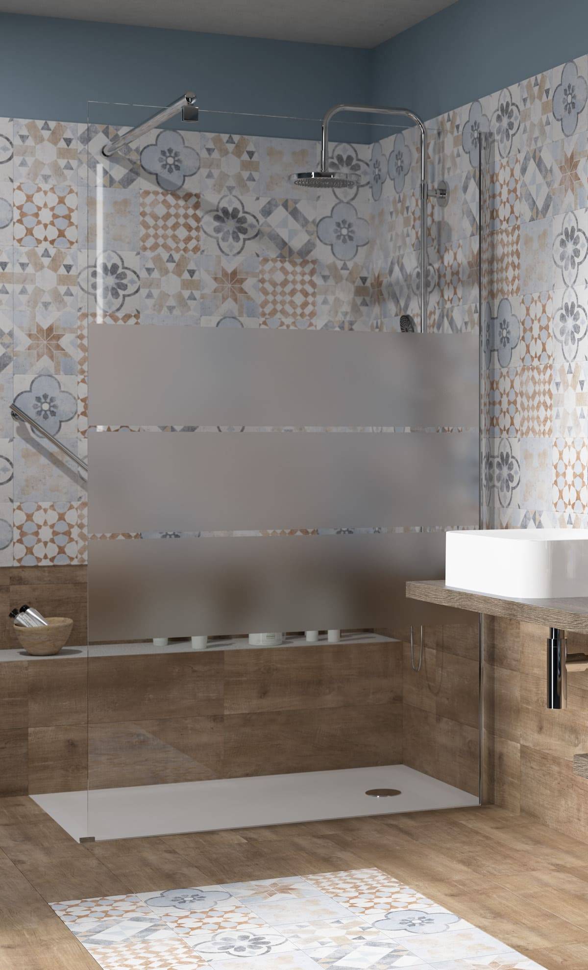 Другой идеей было бы установить мозаичную сетку на стенах душа, они бывают с металлическими и стеклянными вставками или просто фарфоровыми металлическими конструкциями, которые своим отражением освещают ванную комнату. Этот небольшой формат сегодня очень моден.