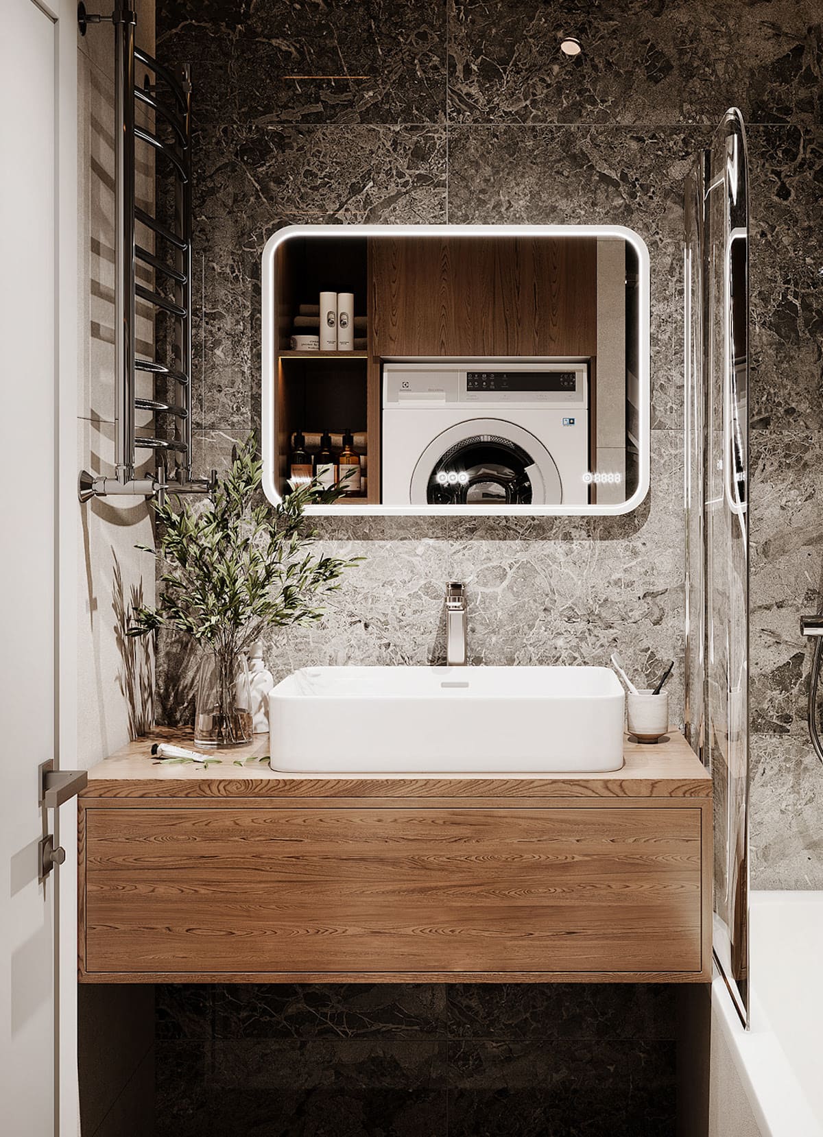 Маленькая современная ванная комната — из дерева или мрамора? Какую выбрать?