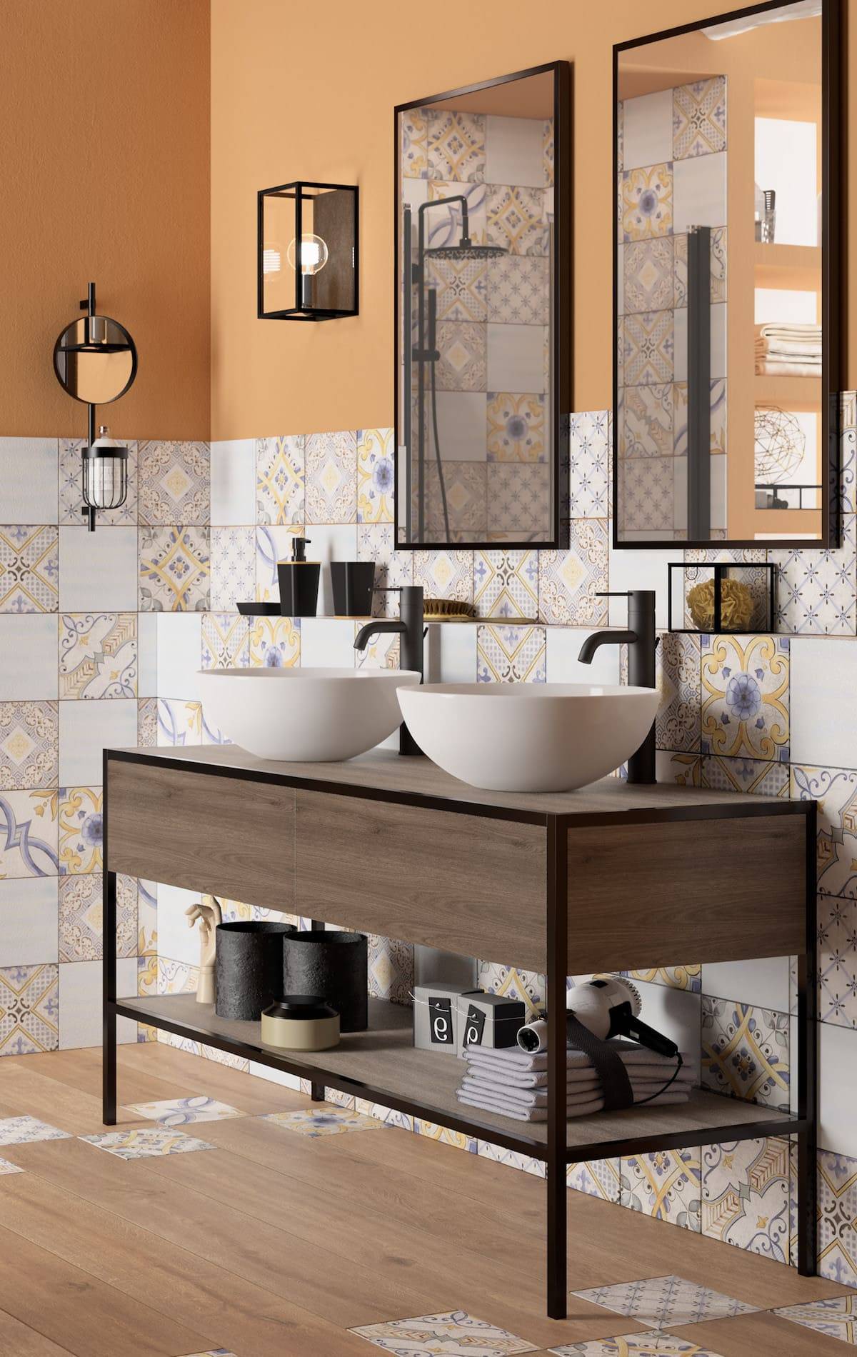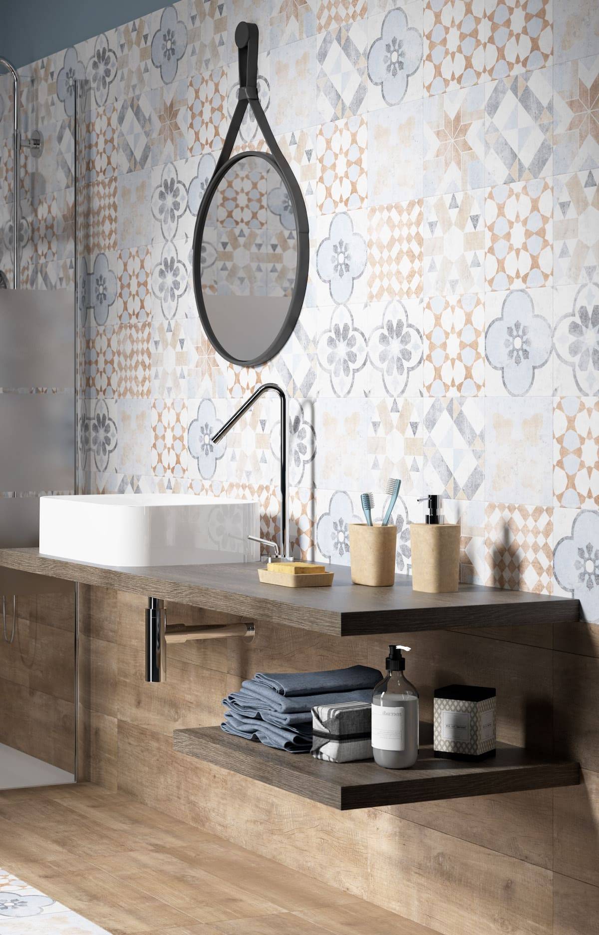 В настоящее время мы все больше склоняемся к использованию плитки с рисунком в стиле пэчворк, которая оживляет однотонные стены. Теперь оригинальность геометрических форм и разноцветных узоров будут оценены еще больше.