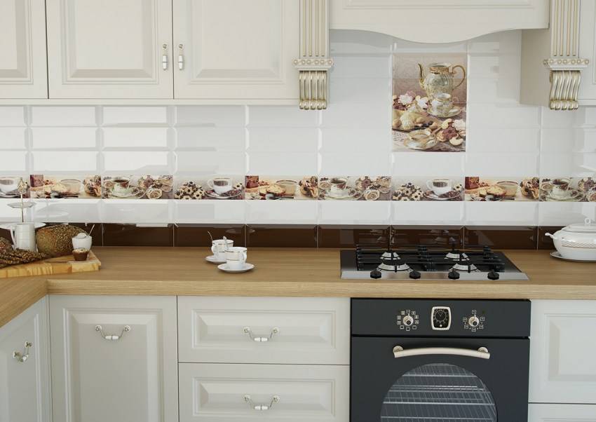 Для кухонного фартука традиционно выбирают практичный и долговечный материал — кафель