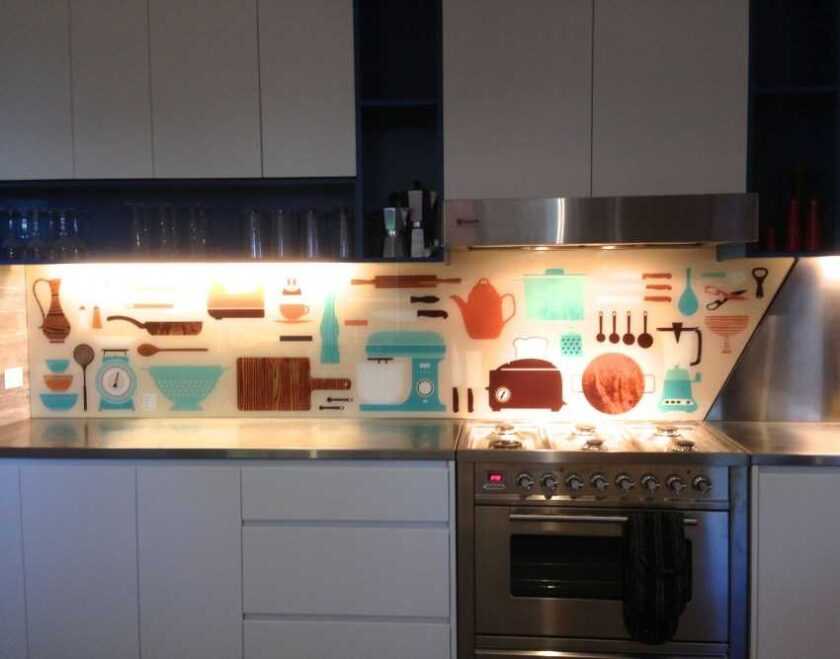 Установка кухонных фартуков из разных материалов производится по разным схемам. При этом учитывается вес материала, толщина отделочного листа, оформление – узор, изображение или панель без рисунка. В большинстве случаев эти работы можно выполнить своими руками, если действовать аккуратно и не спеша.