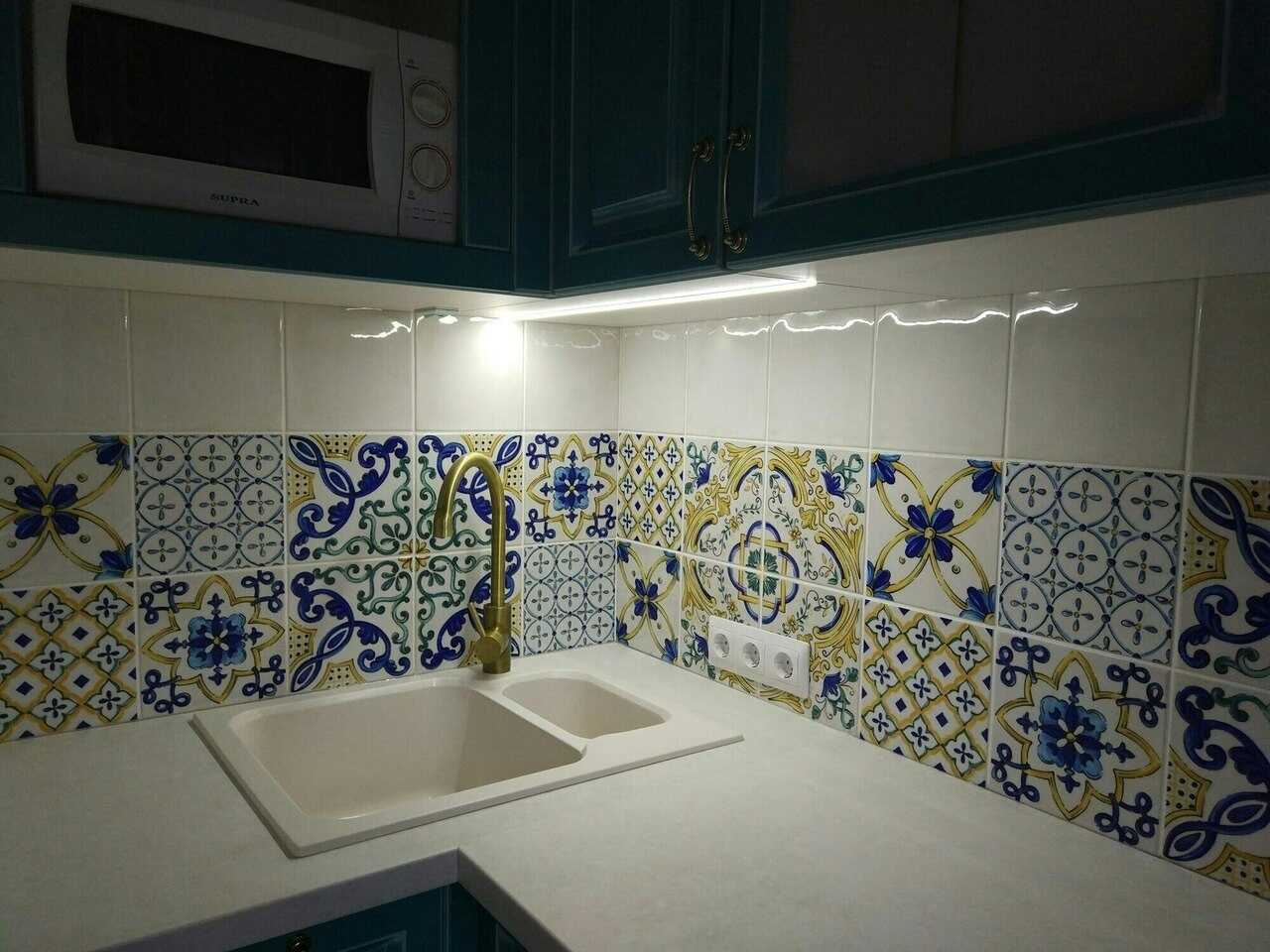 Керамическая плитка – самый популярный материал. Она легко вписывается в любую кухню, так как существует огромное множество плиток разного размера, цвета и фактуры. Она хорошо переносит перепады температуры, прочная, не боится влаги, её легко очистить от загрязнений. При качественной установке служит долго.