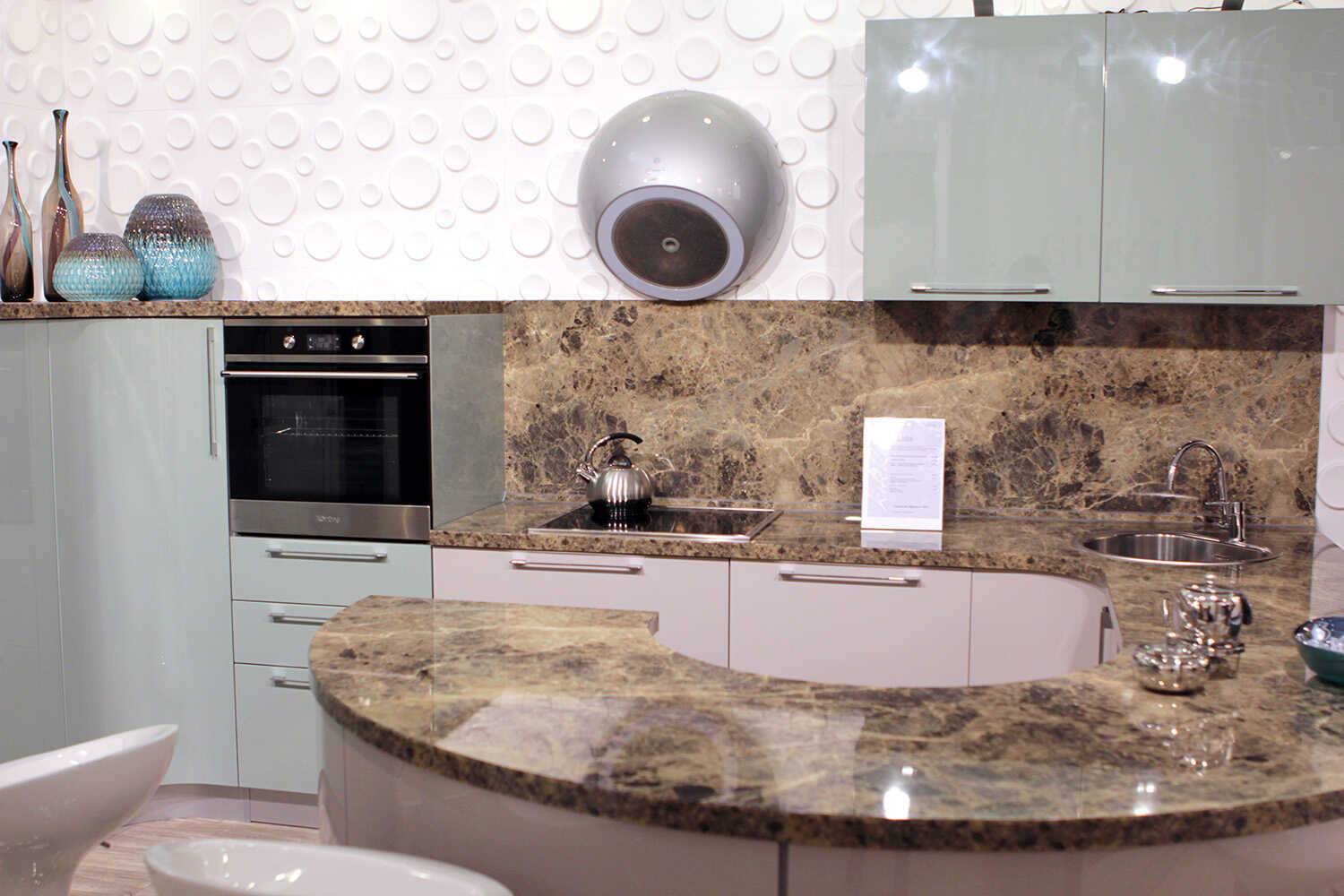 Фартук из камня смотрится гораздо изысканней и аристократичней, чем покрытие из керамической плитки и при этом обладает высокими характеристиками: