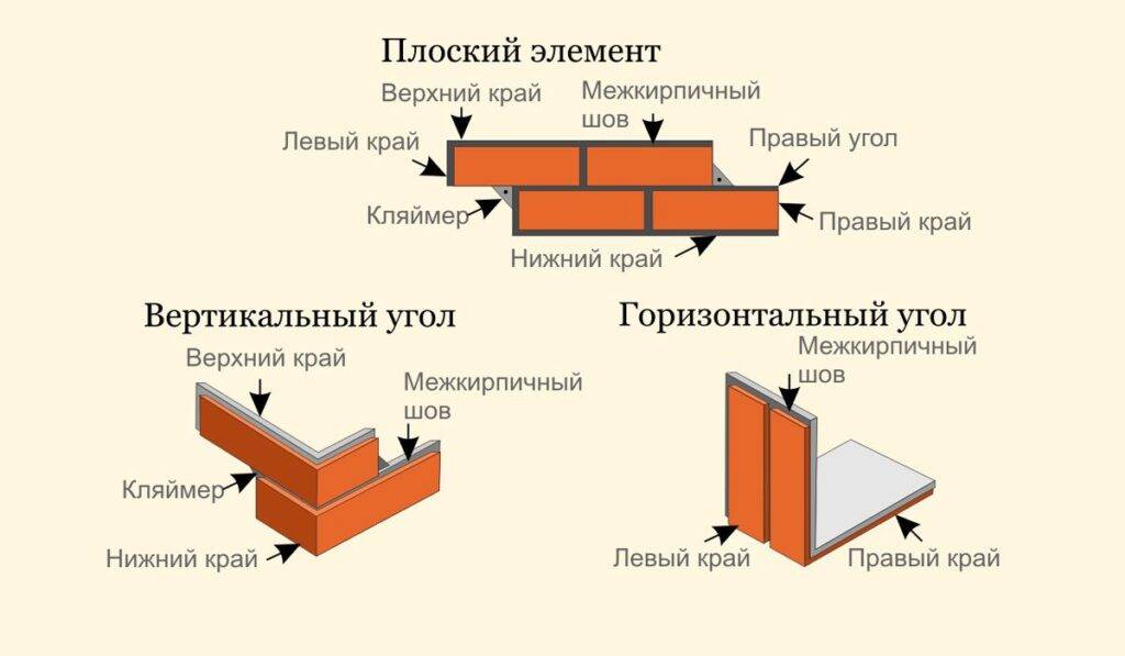 На фото показаны основные части фасадного покрытия из плитки: плоские детали, вертикальные и горизонтальные углы. Также существуют готовые решения для оконного обрамления.