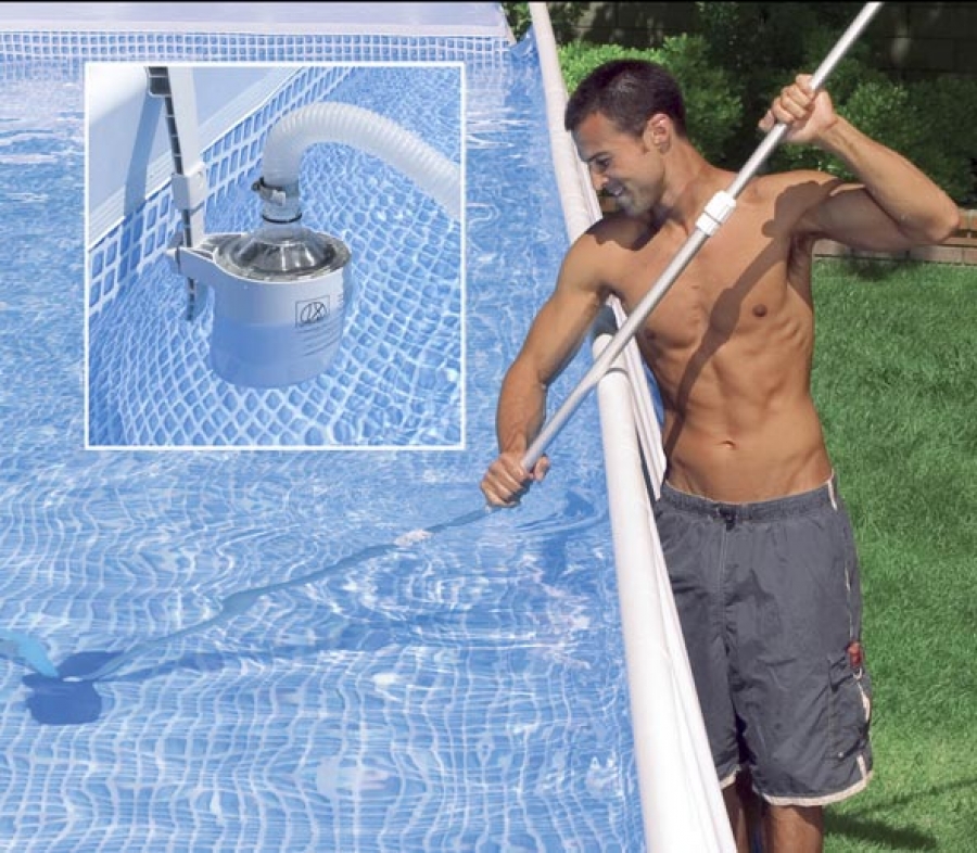 Отвечая на вопрос, как сделать воду в бассейне прозрачной, нельзя не упомянуть о ручных приборах для фильтрации воды в бассейне. К ним относятся водные пылесосы, использовать которые нужно, чтобы собрать крупный мусор с поверхности, со стенок и дна водоема. Пылесос может быть ручным, автоматическим или полуавтоматическим.