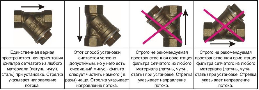 Прямой вариант располагается только на участках горизонтального прохождения труб, а косой можно установить вертикально. На корпусе аппарата есть отметки, позволяющие быстро определить правильное направление устройства. Указанные стрелки должны совпадать с направлением течения воды.