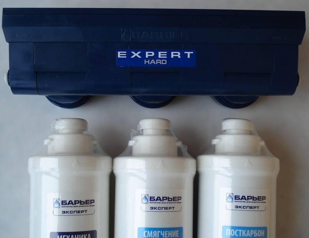 | Барьер EXPERT Ferrum | Доступное и легкое в установке проточное устройство с тремя ступенями очистки; удаляет хлор, железо и неприятные запахи; легкое использование и замена фильтров, оперативная установка, отдельный кран в комплектации; не защищает от накипи и дорогие сменные картриджи | 2500 рублей |