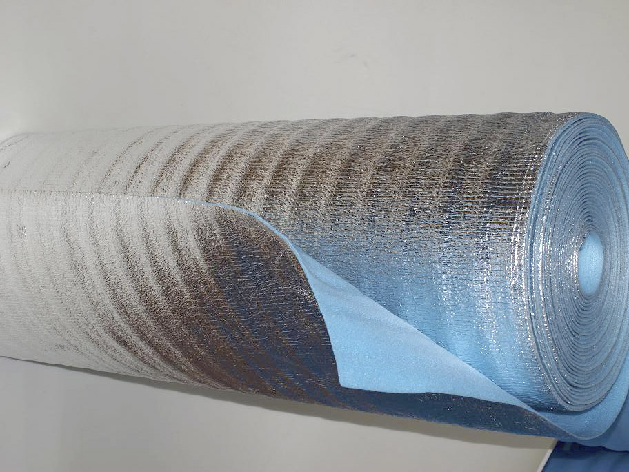 Материал обычно поставляется в виде рулонов. Его толщина может варьироваться от 2 мм до 1 см. Пенный полиэтилен может быть покрыт фольгой как с одной стороны, так и с обеих. Кроме того, выпускаются самоклеющиеся варианты такого утеплителя, когда с одной стороны на материал нанесен адгезивный слой, закрытый защитной пленкой. Теплопроводность полиэтилена составляет 0,038 Вт/(мK), удельный вес материала толщиной 0,5 см – 60 кг/метр. Поглощение влаги разными типами этого материала может колебаться от 0,6% до 3%. Применение полиэтиленовых утеплителей с фольгой обычно не ограничивается какими-либо рамками: материалом можно утеплить стены и пол в помещении, вентиляционную систему, крышу здания, изолировать трубы или холодильники. Нередко вспененный полиэтилен с фольгой используется для оборудования теплого пола под стяжку, как финишная основа под ламинат или линолеум, для теплоизоляции саун.