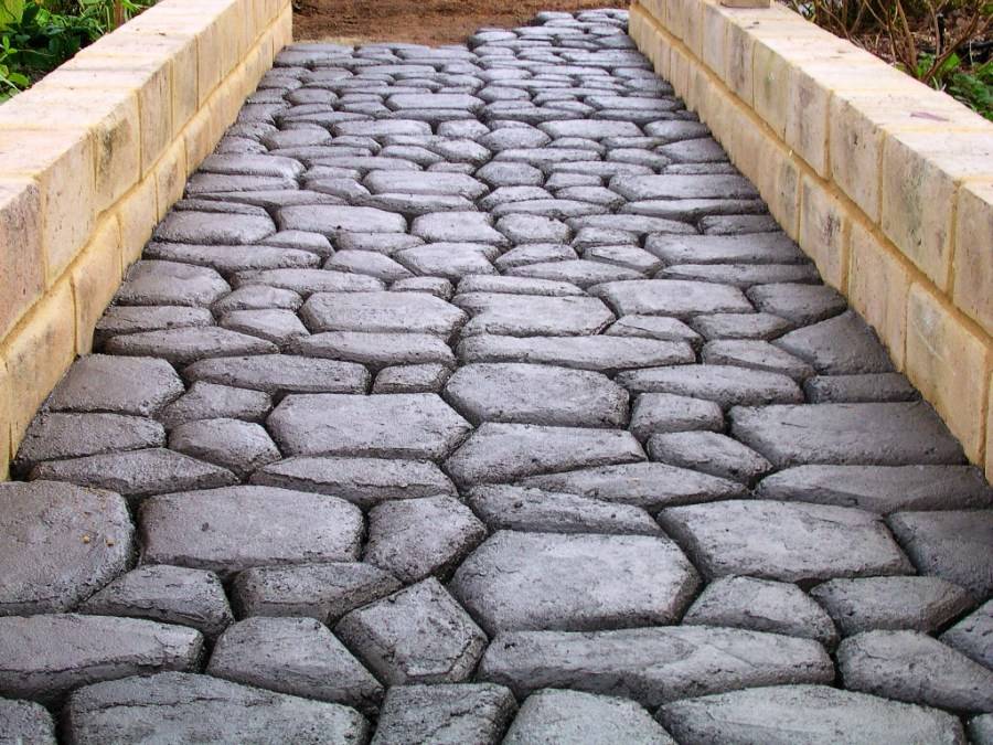 Сделать форму для брусчатки нужной модели. Затем все, что нужно сделать, это подготовить цемент и добавить его в форму для брусчатки. Через 5 минут все, что нужно сделать, это удалить излишки. Вот и все, просто нужно повторить операцию столько раз, сколько необходимо, чтобы получить однородную дорожку из булыжника. Будьте осторожны, цементу нужно дать просохнуть в течение недели, чтобы можно было выложить им дорожку или создать из него кашпо для растения.