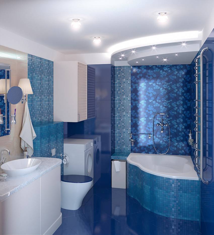 Занимаясь дизайном в маленькой ванной, используйте плитку с некрупным рисунком или мозаику. Не стоит выбирать кафель с большим орнаментом, широкие бордюры.