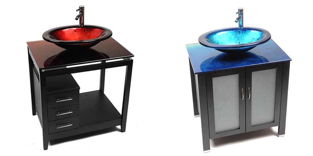 - В целом, в плане формы трендовая мебель для ванной представлена двумя противоположными линиями. Первая имеет овальные, скругленные контуры. Вторая тяготеет к прямоугольным, кубистическим формам.