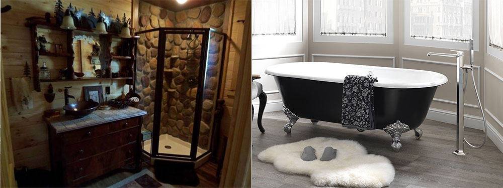 Современные ванные комнаты можно оборудовать ванной или душевой кабиной.