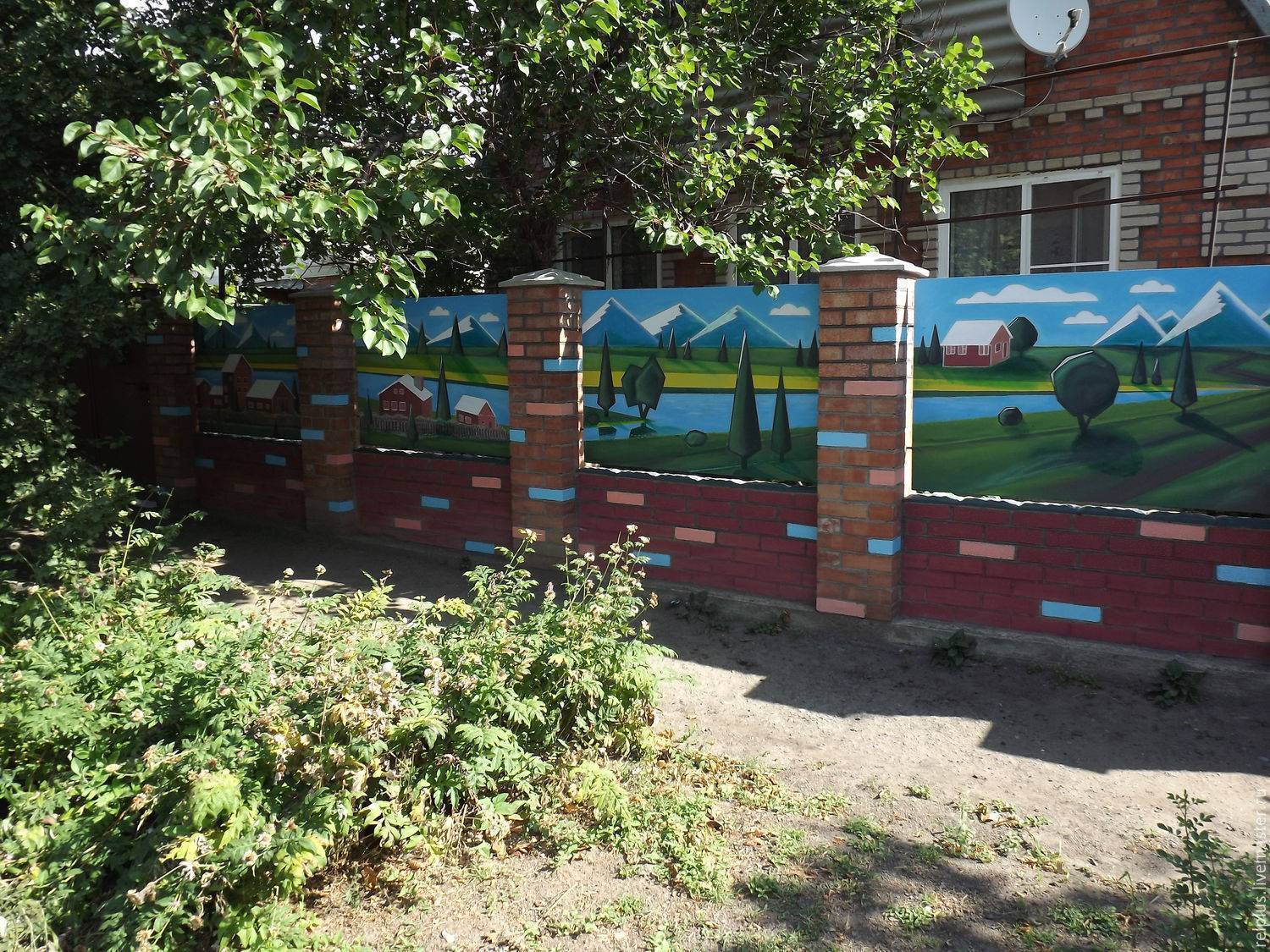 Во-вторых, хотя ПВХ и является довольно стойким материалом к различным видам воздействий, всё же большое полотно имеет некую «вандальную привлекательность», против которой защиты практически нет. А значит, область её использования ограничена. Лучше украшать заборы в закрытых, охраняемых дачных поселках или частных домах с хорошими соседями. В любом случае, это решение довольно интересное, которое в умелых руках может стать настоящим шедевром.