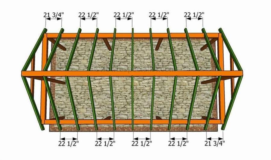 Мы рассматриваем двускатный вариант крыши, поэтому установим стропила как показано на чертеже.