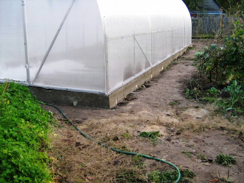 Когда вы строите теплицу на фундаменте, то такая конструкция позволяет материалу каркаса не соприкасаться с землей