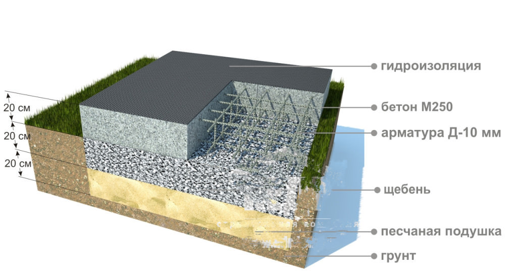 - площадь и толщина такого основания для жилого дома достаточно большая, риск подмывания водой минимален;