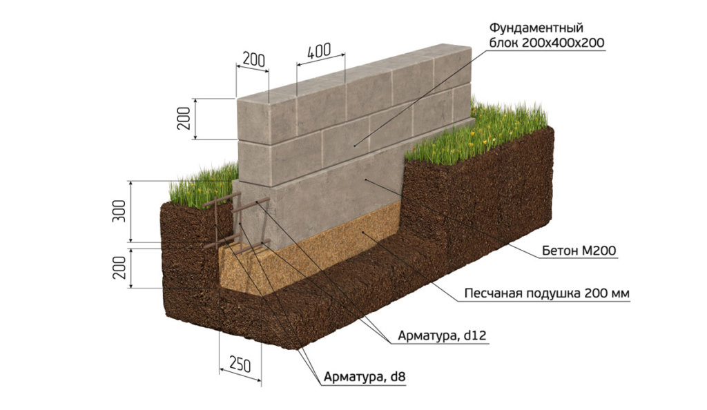Для сборной ленточной опоры бетонная подушка под фундамент из блоков будет надежным, прочным основанием. В то же время затратным решением.