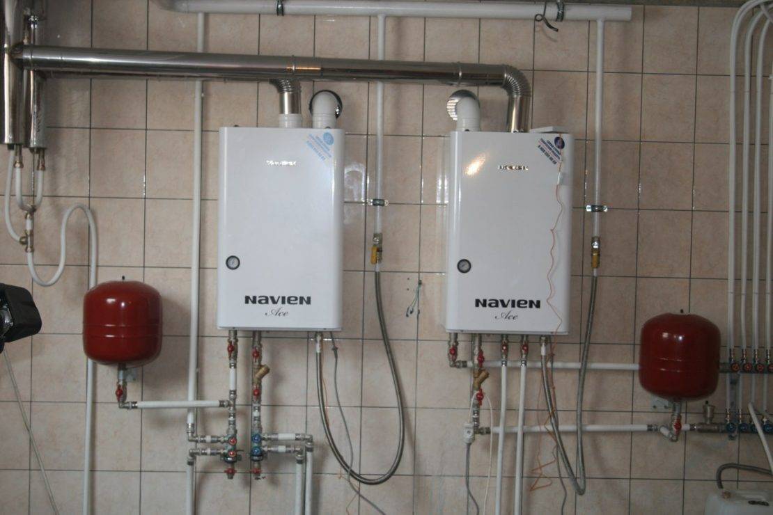 Если вам необходима большая мощность, настенный вариант не подойдет — у них максимальная производительность 40-50 кВт. В этом случае ставят напольный котел. Вот они есть больших мощностей, а еще есть модели, которые могут работать в каскаде. Так вообще можно отапливать большие площади.