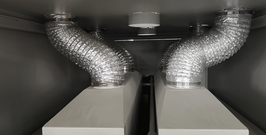 - Благодаря мягкой структуре материалов, гибкие воздуховоды значительно гасят уровень шума, издаваемый вентиляционной установкой, кондиционером или вытяжкой.