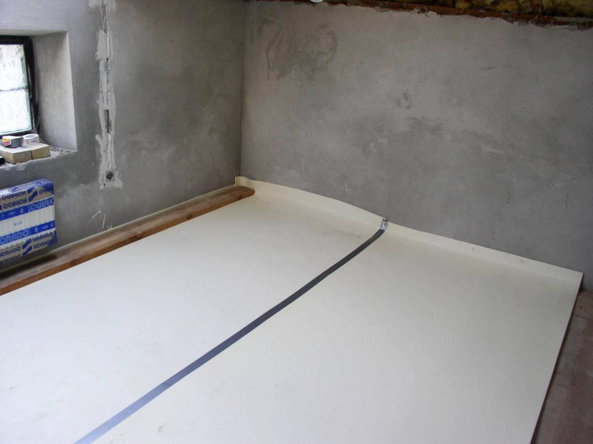 При порывах трубопроводов или случайном расплескивании — вода собирается на полу, потому здесь укладывают самые надежные гидроизоляционные материалы и к тому же в несколько слоев. Таковыми являются пленки и битумно-полимерные рулонные материалы.