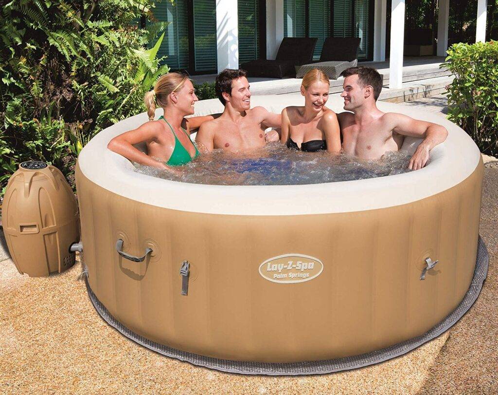 Джакузи можно установить не только в доме, но и в саду. Гидромассажная ванна, адаптированная для использования на открытом воздухе, относительно дорога, но ванна в компании близких или с любимой книгой дает возможность избавиться от накопившихся плохих эмоций и стресса. Если вы не можете позволить себе купить традиционное джакузи, интересной альтернативой будет надувное джакузи. Оно похоже на бассейн, но дополнительно оборудован двигателем и воздушными форсунками. Это позволяет принимать ванну с пеной. Эти типы моделей обычно имеют большую вместимость, внутри могут разместиться от двух до четырех или пяти человек.