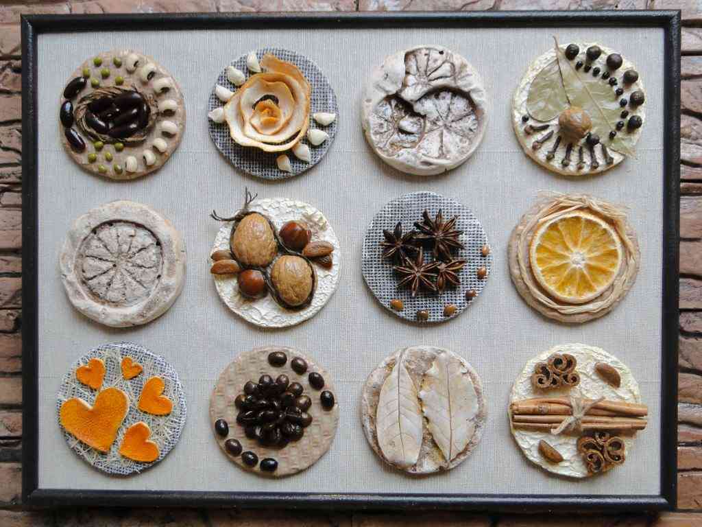 Изготовить подобного рода формы можно в любом количестве. Окрасить их можно разноцветными красками или покрыть все элементы белой. Зафиксировать композицию можно рамкой из багетов или других самодельных материалов. Барельеф фиксируется на стене жидкими гвоздями. Такие изделия украшают стену и добавляют изюминку, делают ее более объемной и интересной.