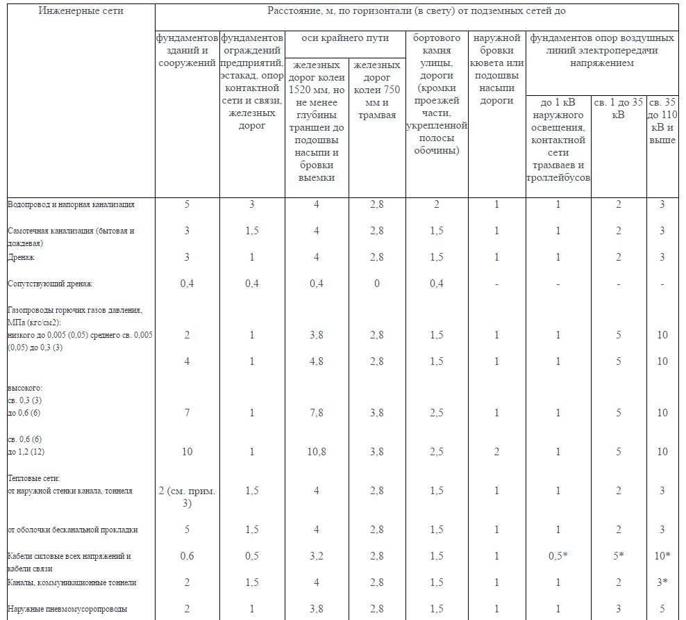 Планируя водоотвод, а также водоснабжение частного дома, первоочередный шаг – ознакомление с требованиями СНиП относительно минимально разрешенных дистанций между сетями: