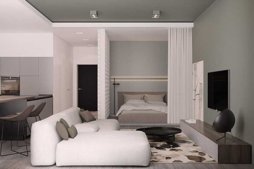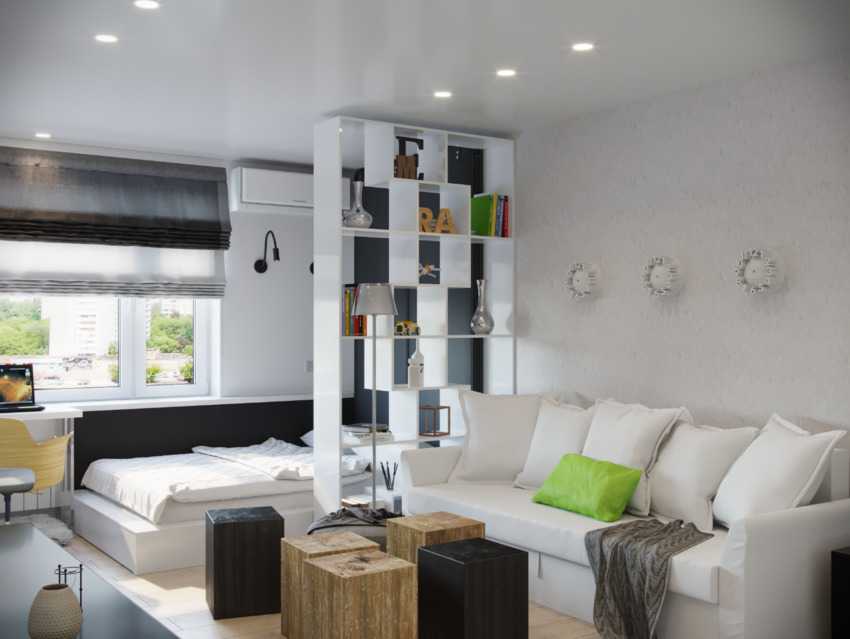 Среди идей дизайна интерьера для маленькой комнаты спальни и гостиной особое внимание стоит уделить современным способом зонирования, к которым относятся: