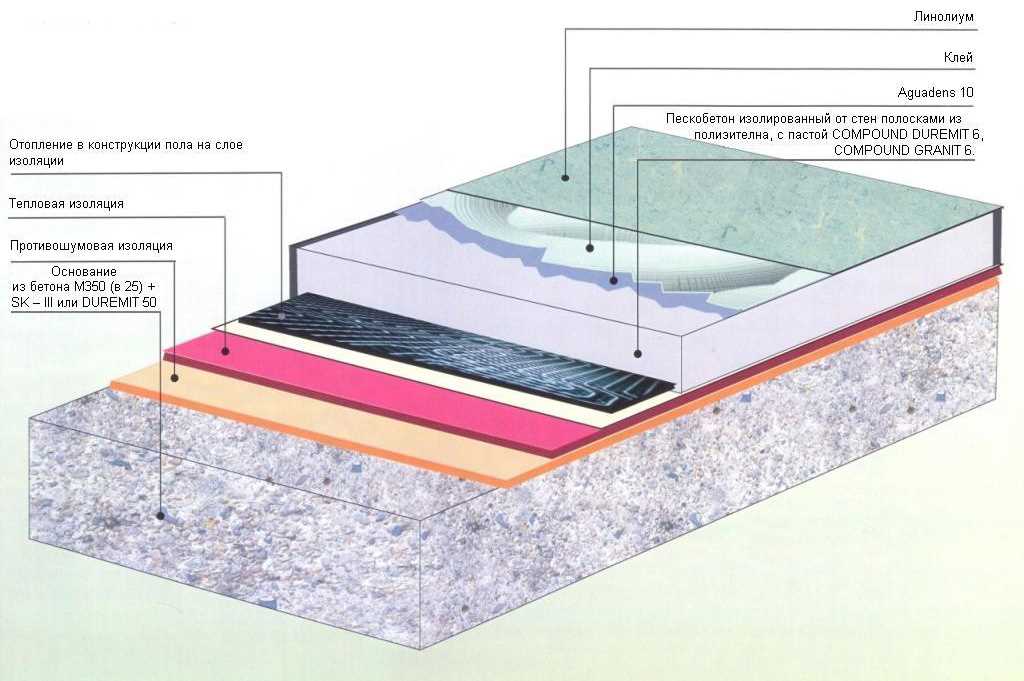 Если в помещении предполагается монтаж пола с подогревом, независимо от его типа (водяной, электрический, инфракрасный) ввод в эксплуатацию возможен только после полного высыхания наливного покрытия.