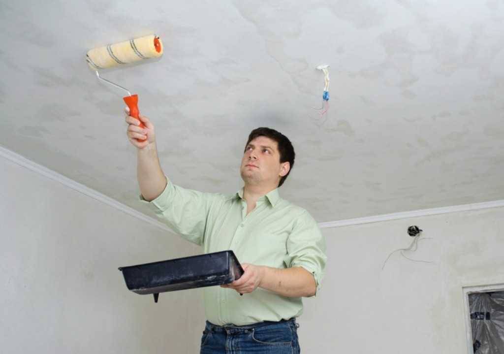 Процесс грунтовки потолка под водоэмульсионную краску практически не отличается от обычного, за исключением тех случаев, что уже описаны выше.