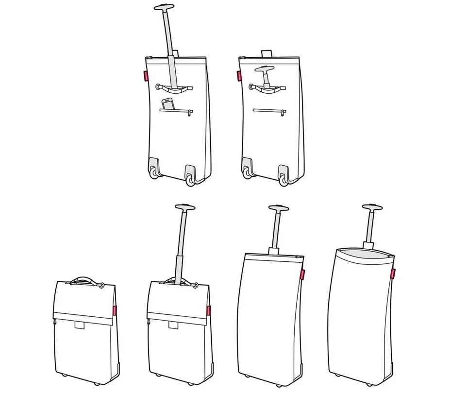 - Reisenthel Foldabletrolley. Складная, сворачивается до компактного размера (6,5х25х32,5 см). Ручки из ткани, главное отделение закрывается на кнопку.