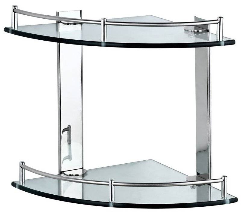 Двухуровневая, изготовлена из стекла с армированными деталями. Крепится при помощи саморезов и дюбелей, которые входят в комплект. Ширина и глубина – 23,5 см, высота 28 см.