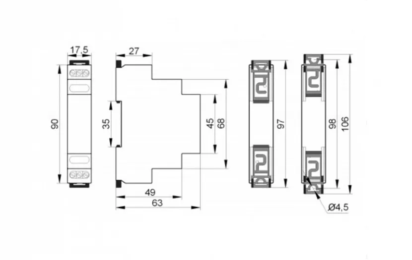 - Способу установки – могут монтироваться на DIN рейку в соответствии с р.1 ГОСТ Р МЭК 60715-2003, кронштейн или другой вариант размещения;