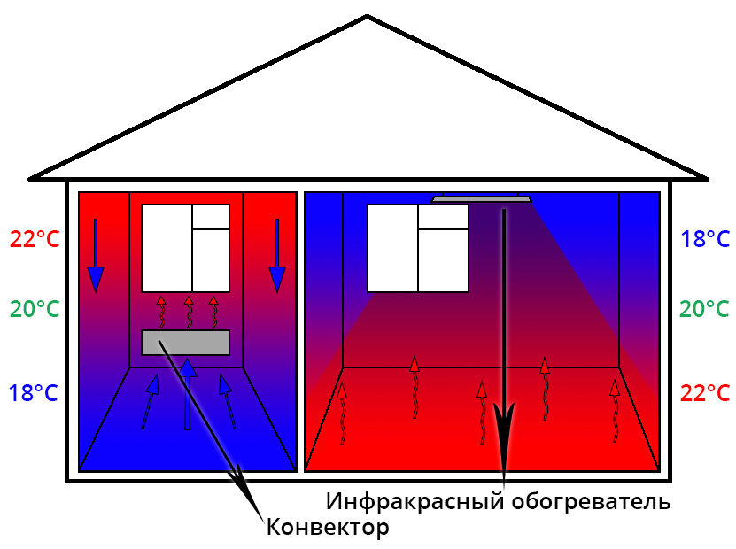 Выйдете за эту зону и сразу почувствуете разницу температуры в несколько градусов. ИК обогреватели с самого начала и создавались именно для прогрева только рабочих зон в помещениях без отопления.