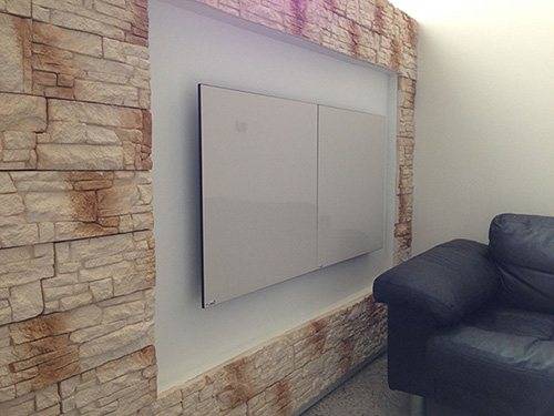 Настенные ИК-панели по своим техническим и эксплуатационным характеристикам похожи на потолочные или напольные. Однако настенные приборы в среднем более слабые, чем другие, поскольку нагретый воздух всегда стремится вверх, что в целом снижает эффективность обогревателя.