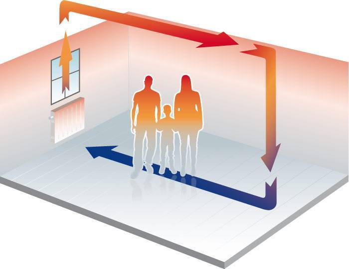 При грамотном распределении резисторных элементов тепло будет распределено равномерно. Когда поверхность нагреется до температуры в 40 – 45 ⁰С, появляется инфракрасное излучение, которое двигается к другой поверхности, например, пола. Отражаясь от него, равномерно распределяется по всей комнате.
