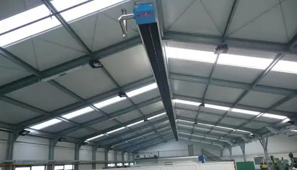Фото 4. Газовые инфракрасные панели в большом помещении, обладают большой мощностью, поэтому их не применяют в доме.