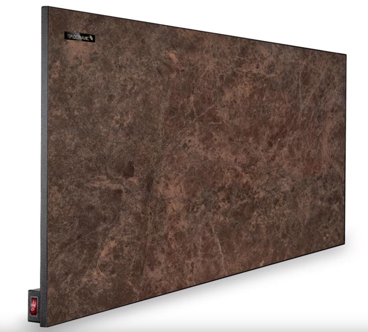 - Керамические (в качестве излучающего, инфракрасные волны, элемента выступает керамическая панель большой площади. Нагрев панели до температуры порядка 60°C, осуществляется вмонтированной металлической спиралью. Излучаемый ИК спектр мягкий, безопасный и комфортный для человека, а высокие эксплуатационные свойства керамики, позволяют использовать данные устройства в учебных заведениях и влажных средах).