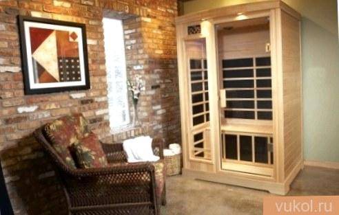 - ИК обогреватель может быть использовать и в маленьких помещениях – мини-саунах, оборудованных в квартирах.