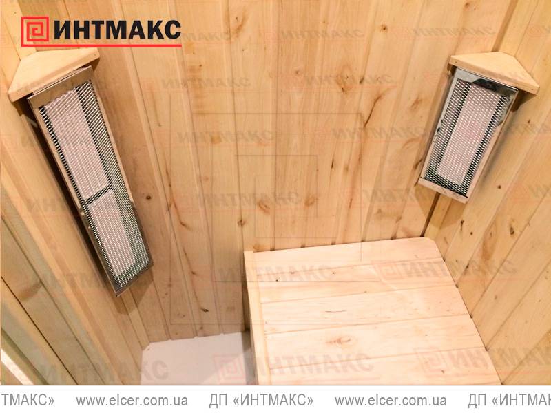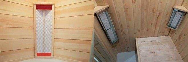 ИК обогреватели, работающие на грудь, монтируются в углах кабины сауны.