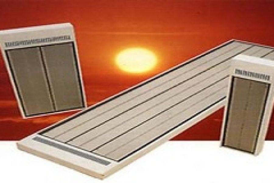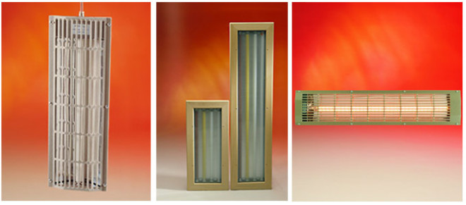 - Плёночные излучатели. Закрепляются на всей внутренней поверхности кабины (стены, потолок). рабочие температуры поверхности подобного излучателя (25-50)°С. Часто используются совместно с керамическими.