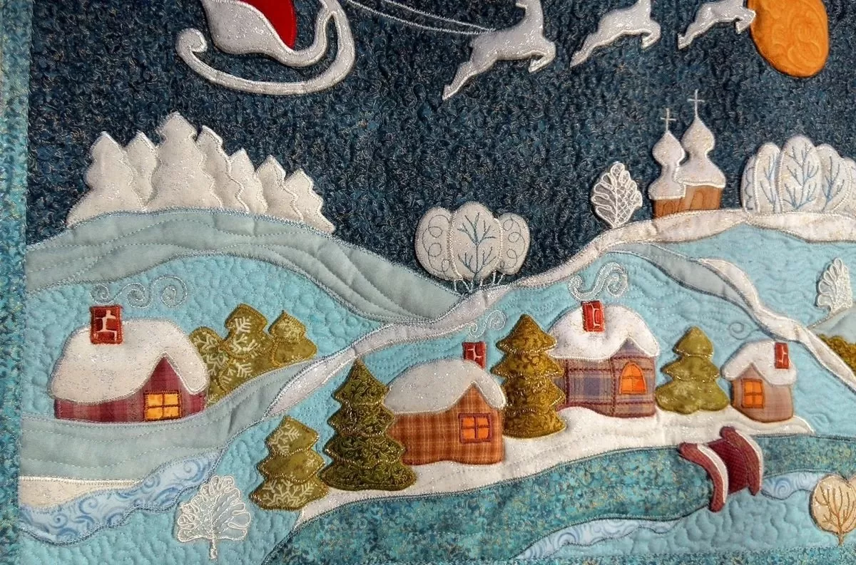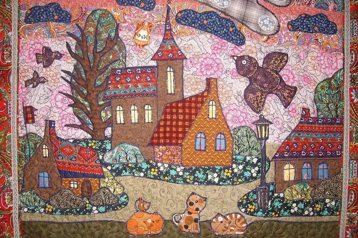 Этот вариант декора стен больше подойдёт для людей, которые любят заниматься шитьем. Перед тем как начать изготовление картины нужно правильно подобрать ткань и будущий узор. Они должны сочетаться по цвету с другими элементами интерьера комнаты, например мебельной обивкой или шторами.