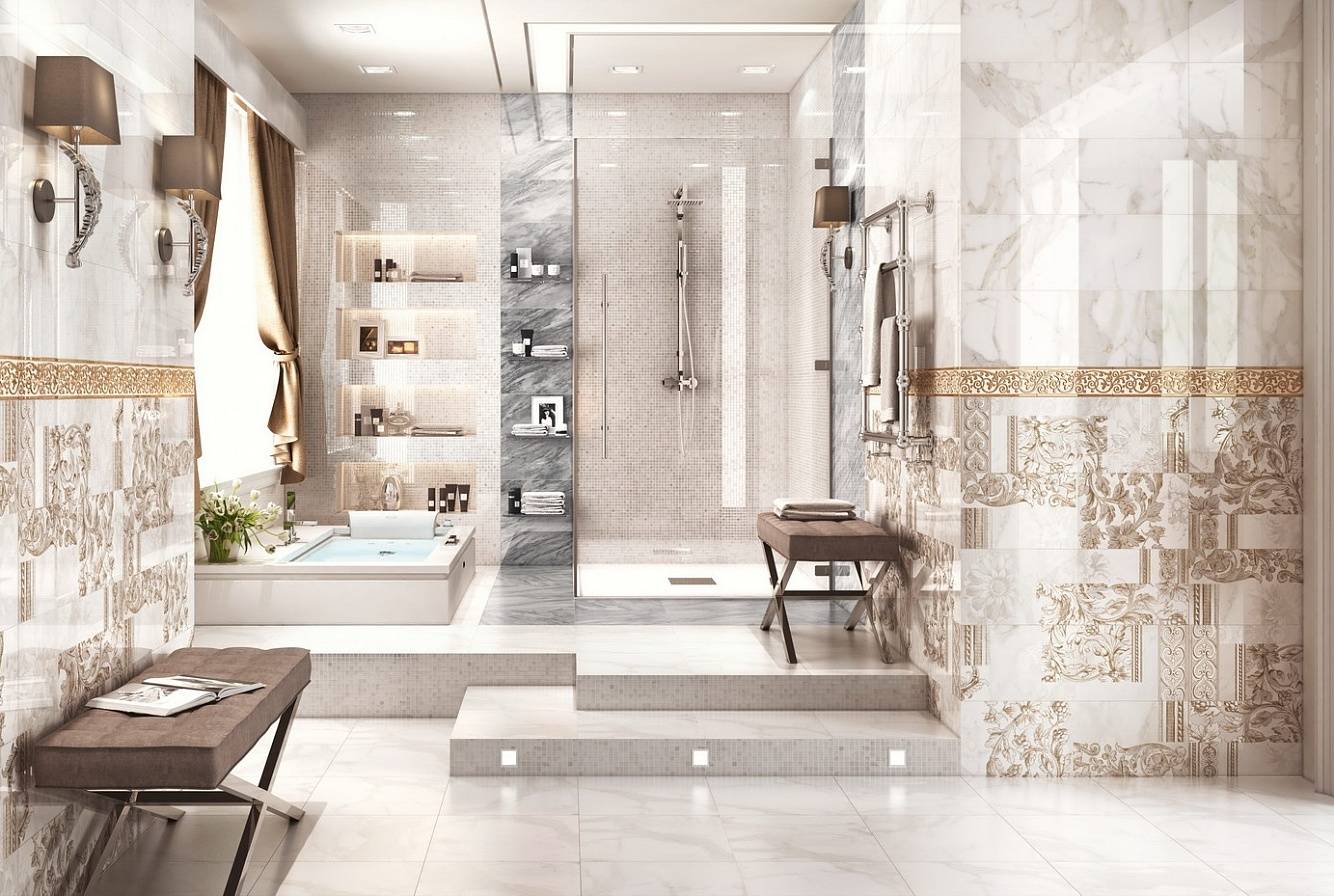 Керамика премиум-класса понравится тем, кто любит аристократизм и роскошь. Эти замечания четко прослеживаются во всех проектных решениях. Кстати, предложение включает не только керамику для стен, но и плитку для пола — керамогранит. А добиться покрытия стен и пола тон в тон очень просто.
