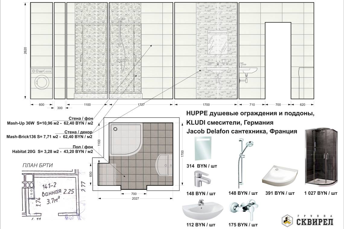 Первый проект для тех, кто любит графические формы в интерьере и предпочитает ванне душевую кабину. За основу берем коллекцию плитки Mash-Up.