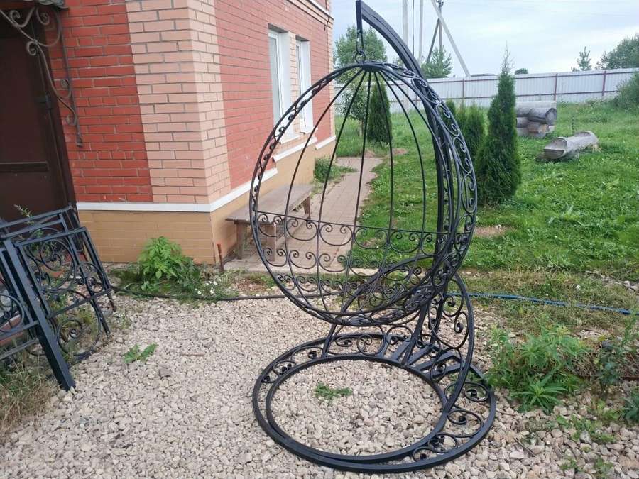 Металлические качели кресло-кокон из профильной трубы. 10 идей для сада