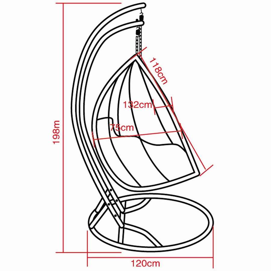 Следующий вариант кокона – конструкция, которая рассчитана на большой вес или большую амплитуду раскачивания, только посмотрите на усиленную часть кресла, на которую подвешивается кокон. А заполнение кокона достаточно простое, только для того, чтобы удерживать мягкую подушку внутри. Имеющиеся размеры помогут самостоятельно без расчетов сделать кресло.