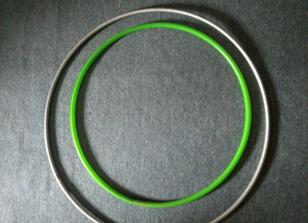 - Формируется каркас. Для этого берётся круглый стальной хулахуп, скруглённая металлическая труба или прочный шланг ПВХ.