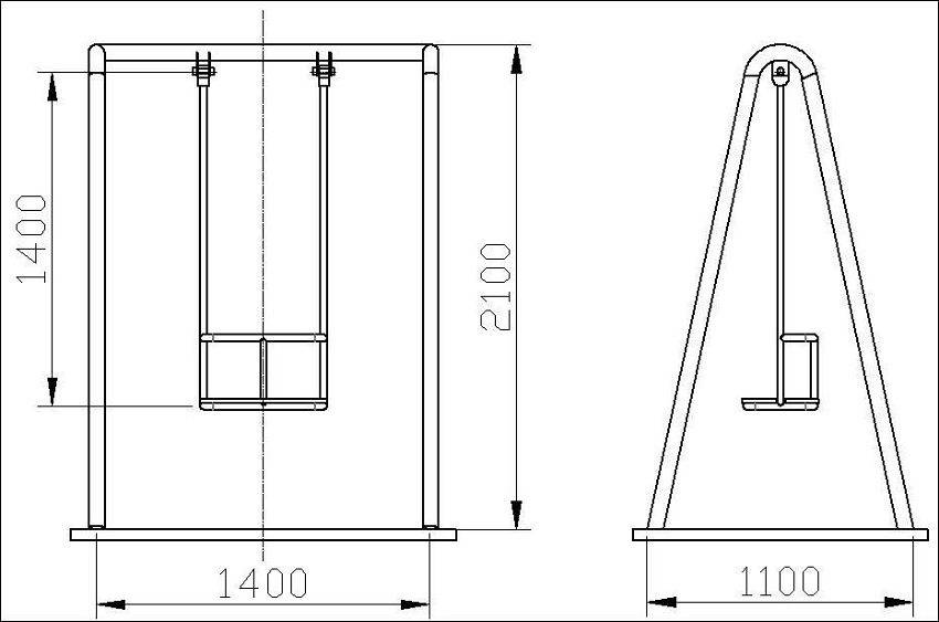 Определиться с выбором того или иного варианта металлической конструкции поможет обзор самых распространенных чертежей устройства для качания на открытом воздухе.